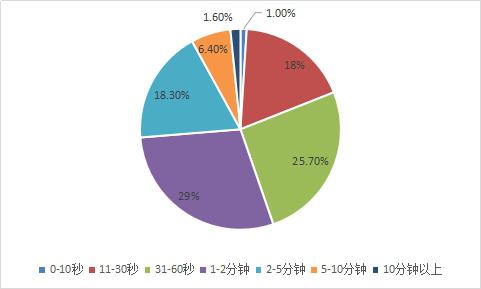 分析認為,短視頻APP用戶利用零碎時間使用,啟動頻次較高,短時間的信息接收使得用戶花費時間不長,集中在半小時以內(nèi)。