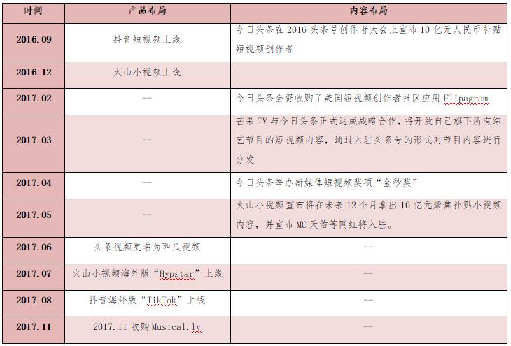 2016年9月20日,今日頭條正式宣布入局短視頻,創(chuàng)始人張一鳴也公開表示短視頻將是內(nèi)容創(chuàng)業(yè)的下一個風口,隨后今日頭條開始全面布局短視頻。