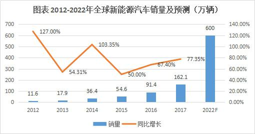 在此背景下,全球新能源汽車銷售量從2011年的5.1萬輛增長(zhǎng)至2017年的1621萬輛,6年時(shí)間銷量增長(zhǎng)30.8倍。未來隨著支持政策持續(xù)推動(dòng)、技術(shù)進(jìn)步、消費(fèi)者習(xí)慣改變、配套設(shè)施普及等因素影響不斷深入,GGI預(yù)計(jì)2022年全球新能源汽車銷量將達(dá)到600萬輛,相比2017年增長(zhǎng)2.7倍。