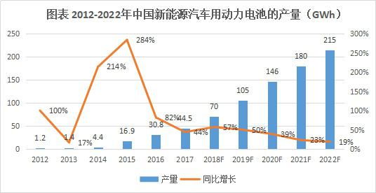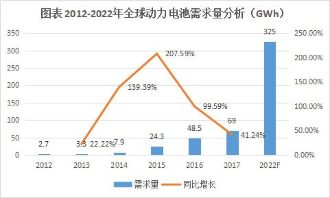 2017年全球應(yīng)用于電動(dòng)汽車動(dòng)力電源規(guī)模為69.0GWh,是消費(fèi)電子、動(dòng)力、儲(chǔ)能三大板塊中增量最大的板塊。GGII預(yù)計(jì)到2022年全球電動(dòng)汽車鋰電池需求量將超過325GWh,相比2017年增長(zhǎng)3.7倍。