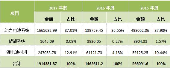 公司主營(yíng)業(yè)務(wù)收入來自動(dòng)力電池系統(tǒng)、儲(chǔ)能系統(tǒng)和鋰電池材料的銷售,具體情況如下: