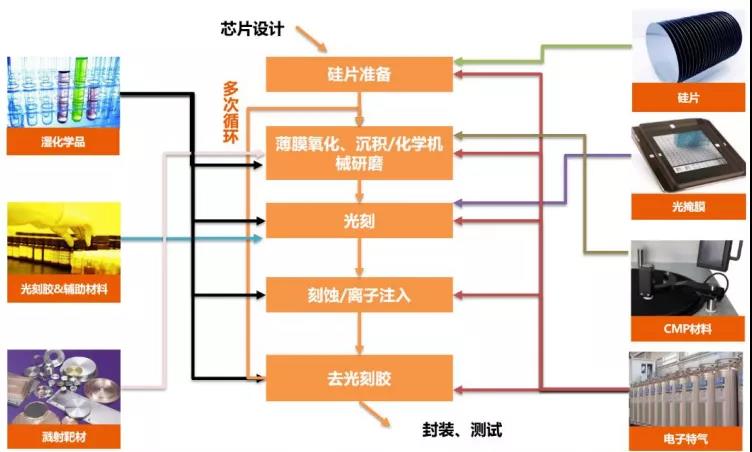 圖表2 芯片制造工序各單項工藝均配套相應材料