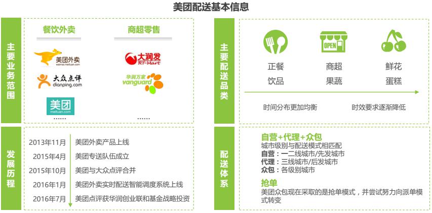 2017年初,美團(tuán)外賣配送日訂單量已經(jīng)超過900萬單,美團(tuán)配送團(tuán)隊(duì)完成的訂單比例逐步提升,配送能力日漸增強(qiáng)?;诿缊F(tuán)外賣入駐商家類型的多元化,美團(tuán)配送的品類也在不斷擴(kuò)展。為快速開拓三四線城市的市場,美團(tuán)外賣采用“自建+加盟代理+眾包”的運(yùn)力組織形式,適應(yīng)不同市場的需要。