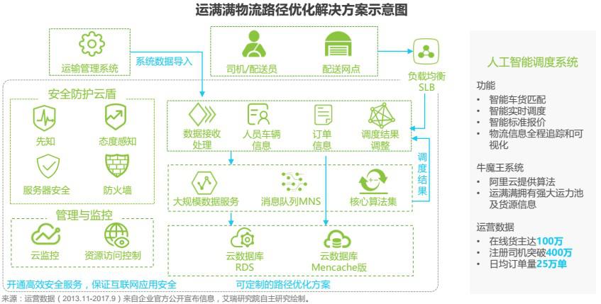 2016年底,運(yùn)滿滿攜手阿里云,發(fā)布了“牛魔王”人工智能調(diào)度系統(tǒng),結(jié)合運(yùn)滿滿的數(shù)據(jù)和用戶場景、以及阿里云的算法團(tuán)隊(duì),共同推動(dòng)干線配貨人工調(diào)度朝著智能化方向推進(jìn)?!芭D酢毕到y(tǒng)是基于云計(jì)算、大數(shù)據(jù)、移動(dòng)互聯(lián)網(wǎng)和人工智能技術(shù)的公路物流領(lǐng)域高新技術(shù)綜合應(yīng)用的典型代表,可以實(shí)現(xiàn)服務(wù)車主與貨主的智能車貨匹配、智能實(shí)時(shí)調(diào)度、智能標(biāo)準(zhǔn)報(bào)價(jià)及對物流信息全程追蹤和可視化,顯著提升公路干線物流貨源、車輛、路線、價(jià)格匹配速度、精準(zhǔn)度和運(yùn)輸組織效率。