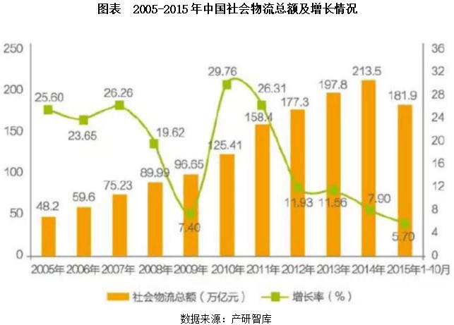 2015年1-10月,全國社會(huì)物流總額為181.9萬億元,按可比價(jià)格計(jì)算,同比增長5.7%,增速較1-9月回落0.1個(gè)百分點(diǎn),增速比去年同期回落2.6個(gè)百分點(diǎn)。