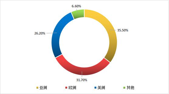 調(diào)查顯示,2016年前三季度全球α-亞麻酸行業(yè)需求市場(chǎng)占比如下:其中亞洲占比最高達(dá)到35.5%,其次是歐洲31.7%,美洲26.2%。