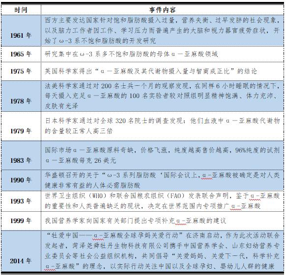 圖4 α-亞麻酸研究歷史事件