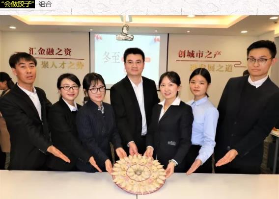 “會做餃子”組合,用餃子擺成了圓環(huán),象征著匯創(chuàng)資本的所有員工團團圓圓、心心相印。